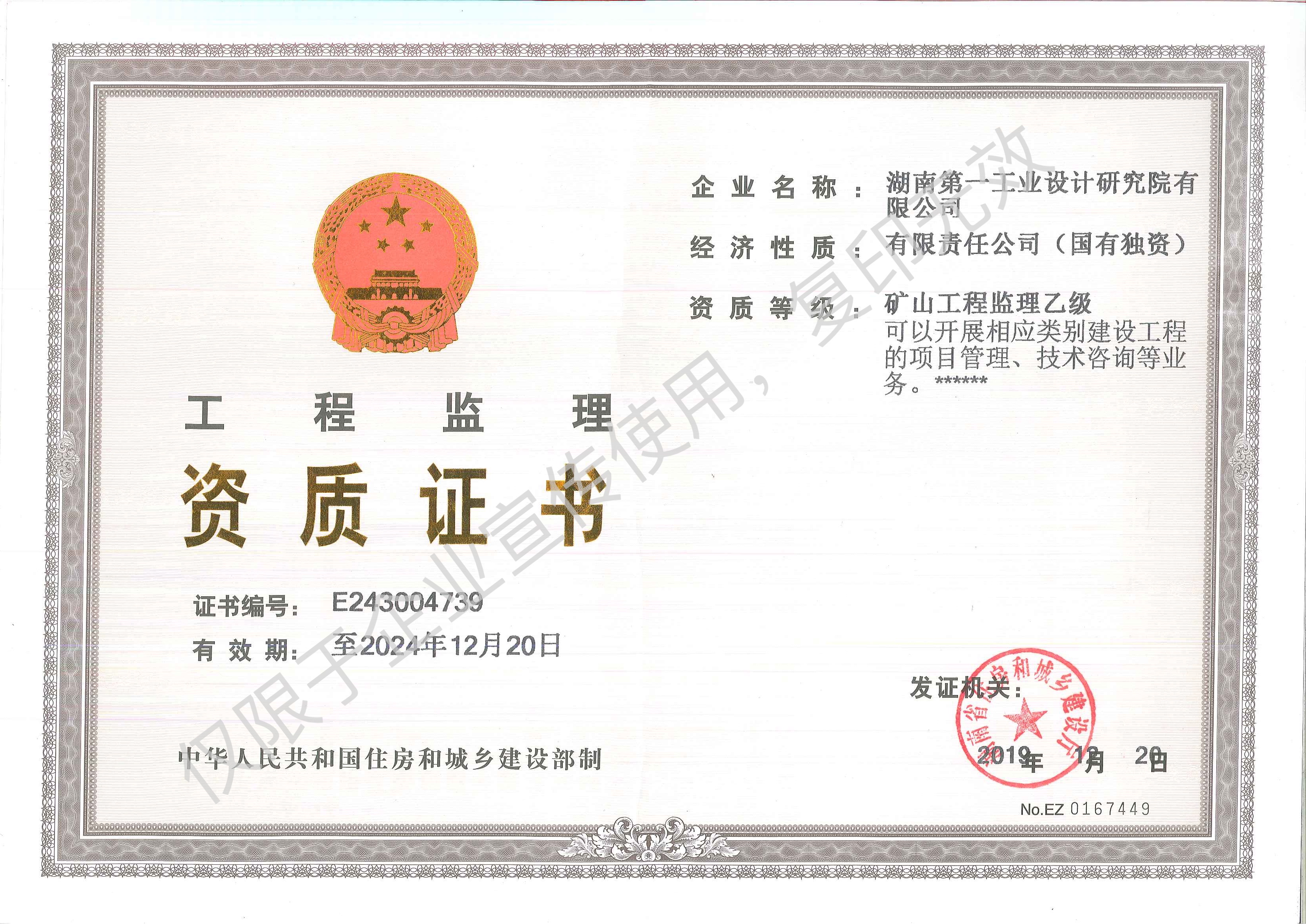 工程監(jiān)理資質(zhì)證書(shū)(礦山工程監(jiān)理乙…